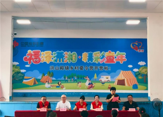 (通讯员:李淏)7月15日上午,由湖南省福利彩票发行中心、洪山殿镇人民政府联合举办的2025年“福泽潇湘?精彩童年”乡村夏令营在洪山殿镇太平小学正式启动。来自全镇各村的46名留守儿童、志愿者辅导团队共同见证了这一暖心时刻。娄底市福利彩票中心主任谭银光、副主任李艳,长沙大学教授曾一兵,镇党委委员谢姣如,双峰县福利彩票中心主任王军,镇中心学校党总支书记康中杰出席开幕式。