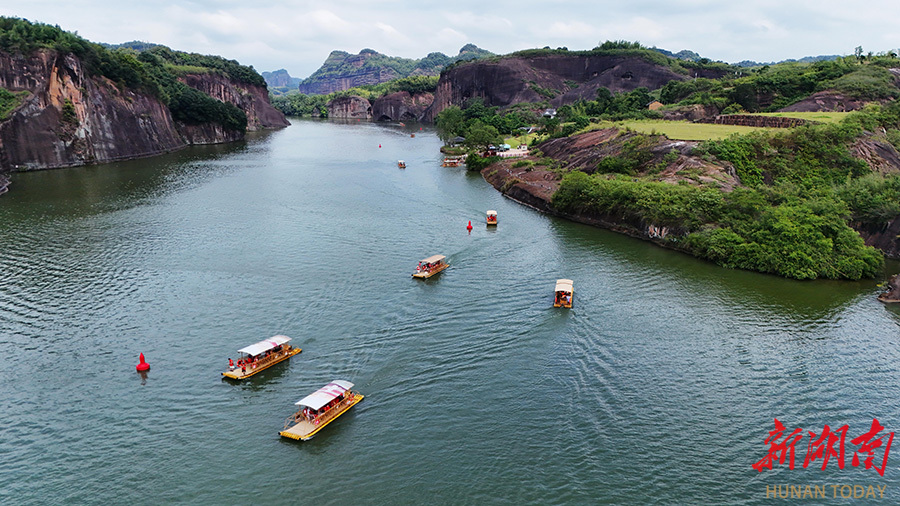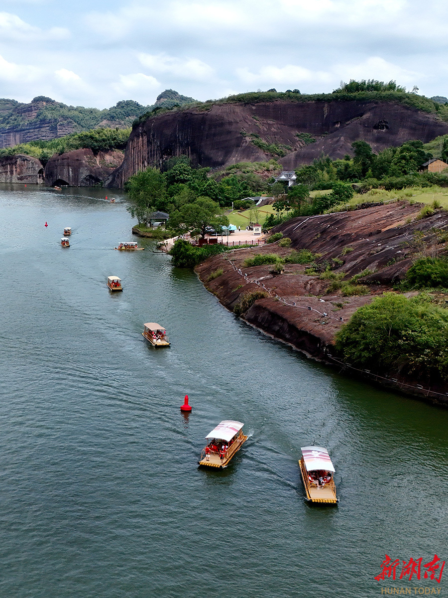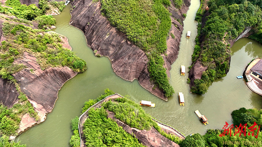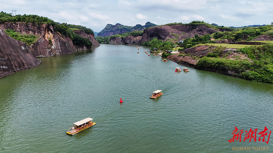8月5日,郴州市翠江风景区,游客乘坐竹筏,置身山水中,享受盛夏里的清凉和惬意。贺茂峰 摄(湖南图片库)
