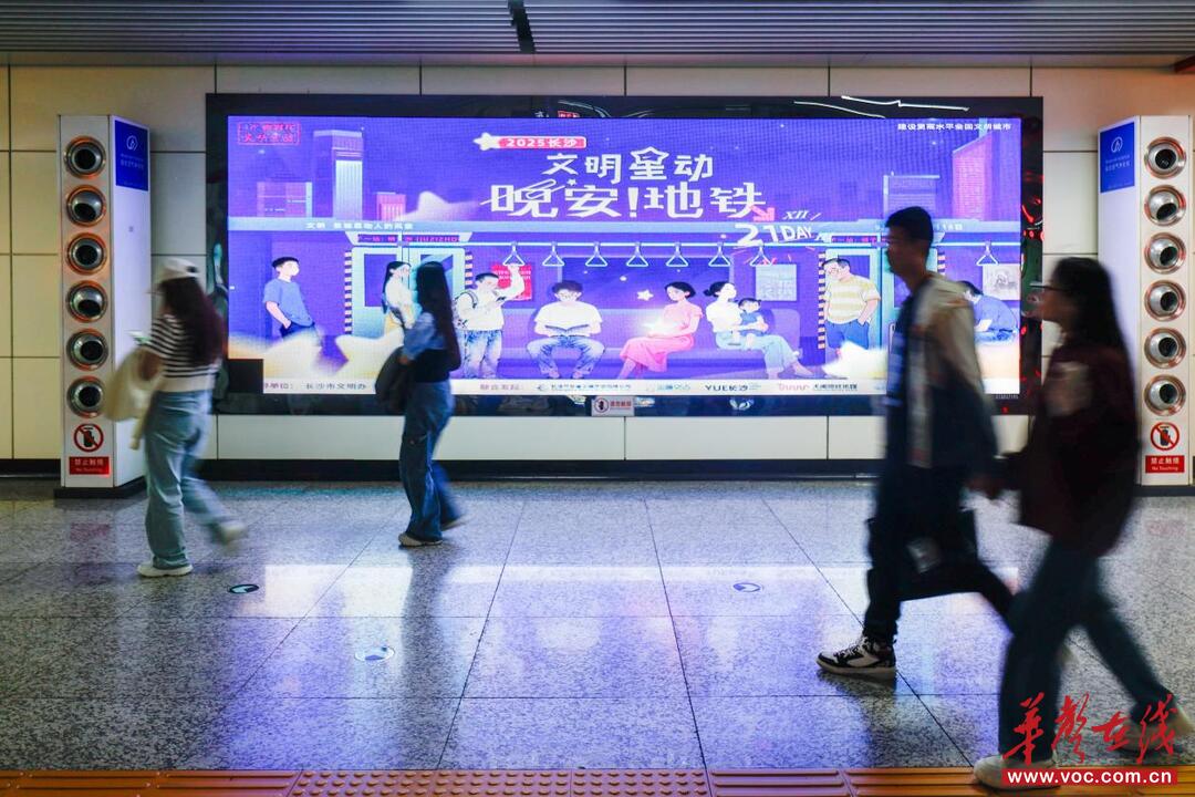 除语音播报与线上征集,主办方还推出《长沙,无限可能的夜晚》主题短片,借助融媒体手段扩大传播效应。话题#长沙文明地铁向乘客道晚安#在社交平台引发广泛讨论,有网友留言称赞:“文明长沙的仪式感,真强!”