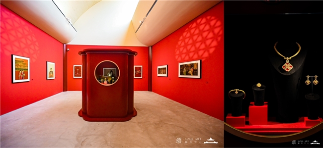 在頌厅,珠宝是被精心陈列的古意,也似诉说东方美学的风物。周大福将构成、透雕与对称的节奏,与“天圆地方”的宇宙观,化作珠宝上金丝镂空的细腻肌理、宝石镶嵌的璀璨光泽与层次透视的巧思,美学韵律凝于珠宝之间。窗檑与棂格纹样投射在展厅的左右宫墙之上,是故宫数百年建筑语汇中,节气与礼制的痕迹。孙郡以其独有的“新文人画”式的光影语法,为周大福创作的摄影作品错落呈列。当光从珠宝的精致纹路中透过,便是古代宫阙在当下生活语境中的柔美再现。