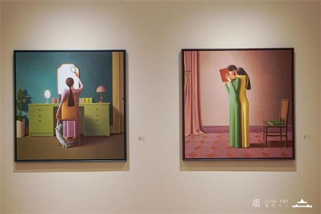 「頌艺术中心」持续探索东方美学,寻找中国艺术家的东方性回归。二楼藏家厅呈现艺青年艺术家王健个展《隐匿》。这不仅是三载春秋的一份美学献礼,更是一次向内而行的精神重逢。王健以细腻含蓄的笔触、神秘而充满戏剧感的布局,勾勒出一个恍若隔世的静谧世界?;髦忻致殴诺涞氖庥氚材?,亦传达着一种治愈人心的美感。