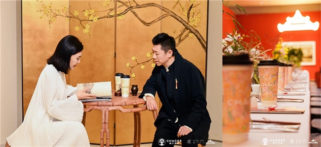 夜幕方临,红墙承载着历史的厚重,又映衬着今晚的欢庆展厅。镜头定格的瞬间,恍若与故宫历史气韵的并肩而立。气息间弥漫清润桂香,霸王茶姬以金桂入茶,奉上今秋的第一盏温润。花香与茶汤交织,淡雅而悠长,与拉菲的醇厚口感碰撞出异域火花。腕间的合香与唇齿间的桂香互为映衬,让初入展厅的这一刻,成为香与茶、古与今、人与人之间最温柔的邂逅。