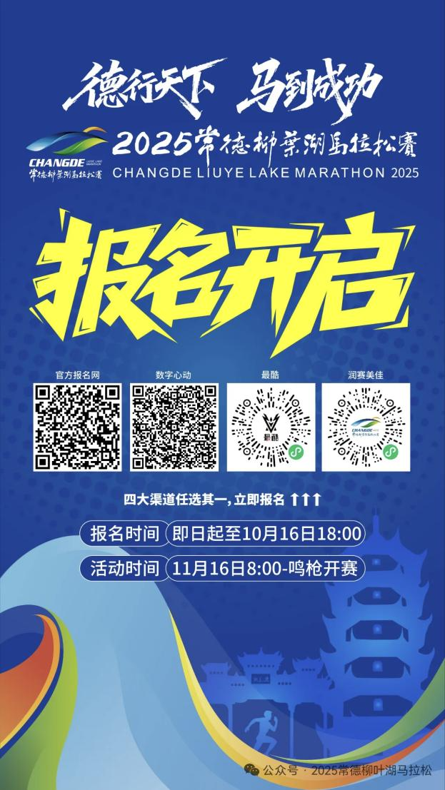 赛事设置兼顾专业竞技与大众参与:42.195公里马拉松项目(限额4000人,年龄限20周岁以上)、21公里半程马拉松项目(限额8000人,年龄限16周岁以上)、5公里欢乐跑项目(含个人组与家庭组,限额8000人,家庭组需1名成年人陪同)。报名通道截至10月16日18:00,采用“先报先得、额满即止”原则,跑者可通过赛事官方公众号(2025常德柳叶湖马拉松)、跑哪儿、最酷、数字心动、润赛美佳等平台报名。