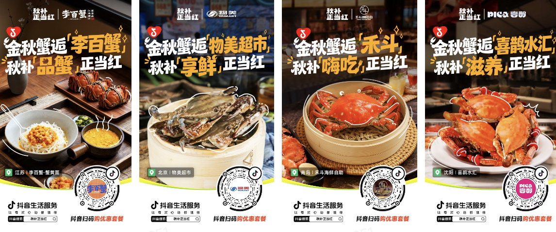 值此契机,抖音生活服务敏锐捕捉季节需求,于2025年9月28日至10月8日推出「秋补正当红」主题活动。项目以当季螃蟹为核心引流品类,同时覆盖多元滋补场景,并携手首席合作伙伴东风风神共同打造一场秋日滋补盛宴?;疃奂莆?万家商户参与,整体交易额两周内提升30%,较去年同期品类增长170%。平台与商家共同营造消费新场景、助推季节性生意增长的显著成效。