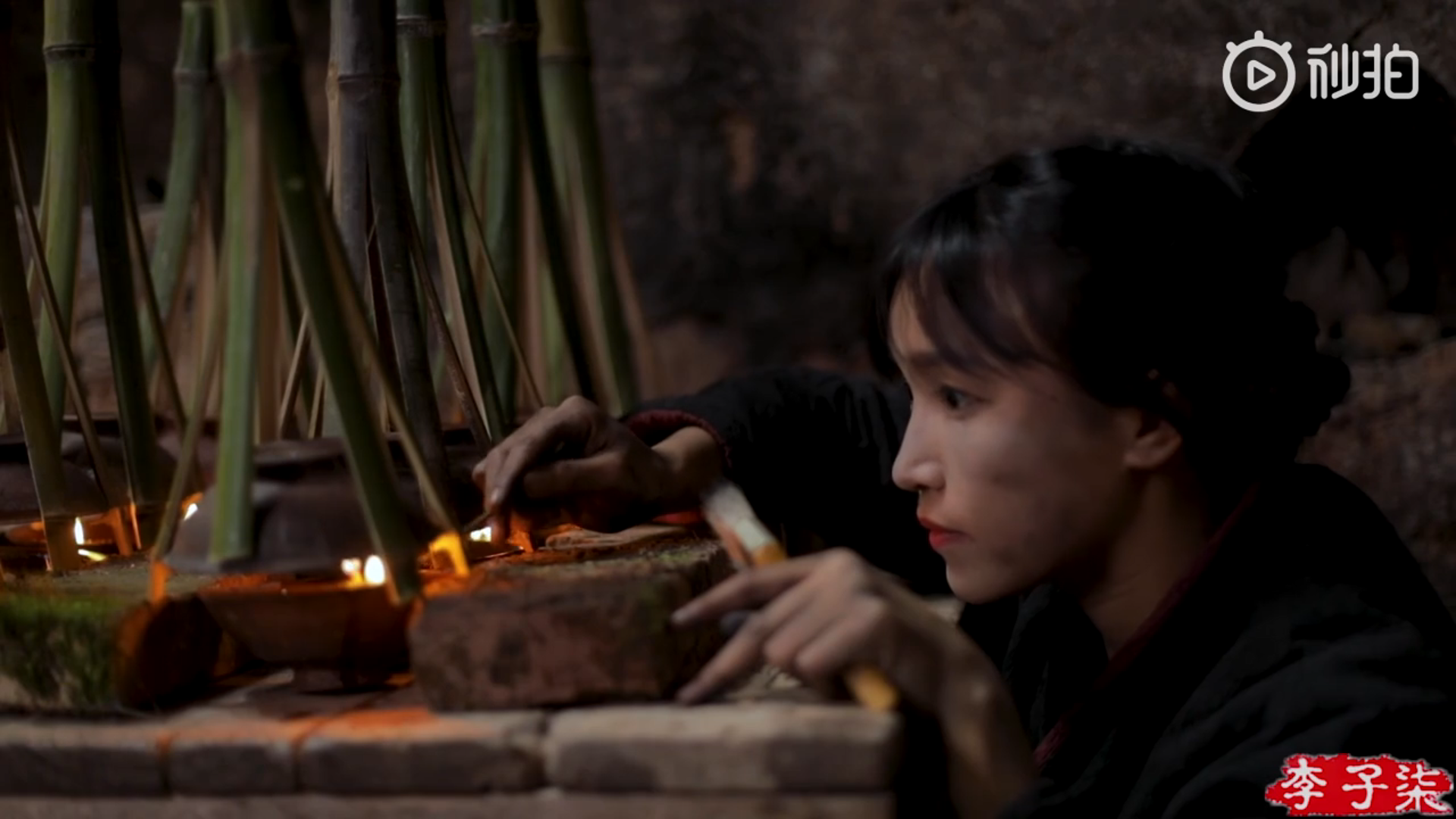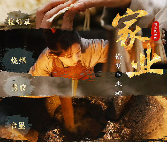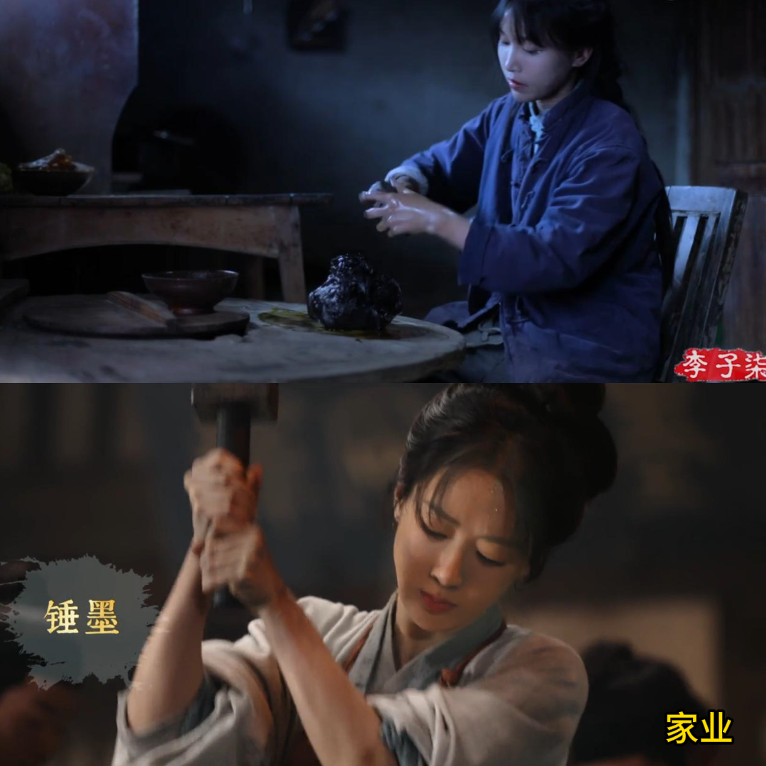 正是这些经典的制墨手法与过程,让许多网友不约而同地想起了另一个熟悉的身影——李子柒。2019年,李子柒发布“文房四宝”的视频,其中制墨的过程令人印象深刻。仔细对比和电视剧制墨的过程,能发现他们的主要步骤基本是一样的。