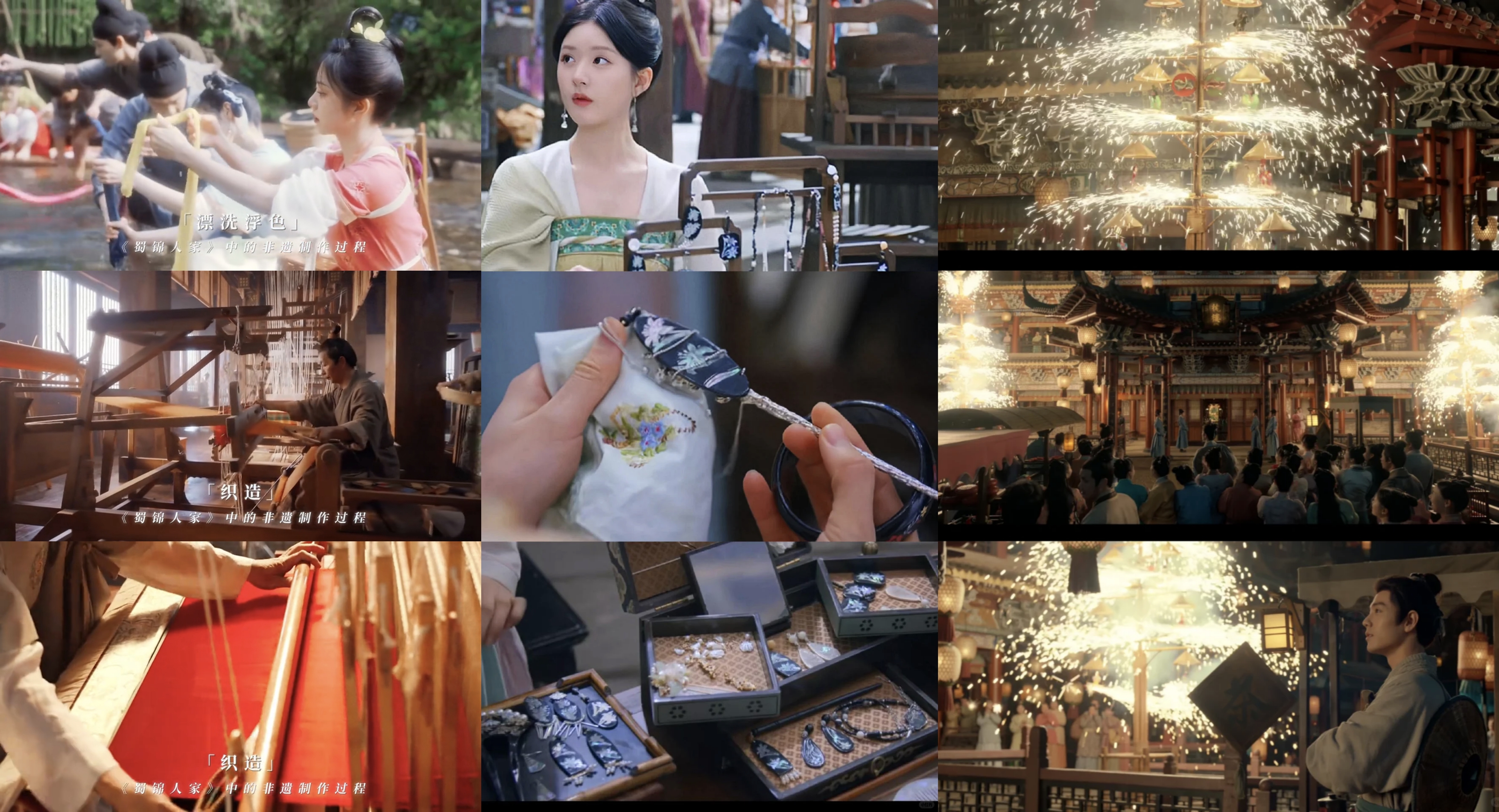 《家业》也并非个例,近年来,越来越多的影视作品开始关注非遗的传承,这种"影视+非遗"的模式不仅丰富了剧情内容,也为传统文化的传播开辟了新的途径。比如,《蜀锦人家》将镜头对准了精美绝伦的蜀锦织造技艺,《珠帘玉幕》展现了精美的“螺钿”镶嵌工艺,《藏海传》展现千年绝技“药发木偶”。