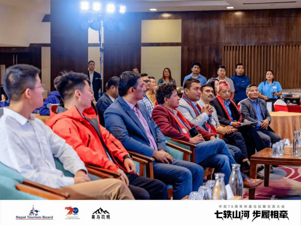 为庆祝中国与尼泊尔建交70周年,由尼泊尔旅游局主办的“环喜马拉雅交流大会”于9月29日在尼泊尔加德满都举行。活动汇聚了来自使馆、中尼登山界行业代表及文化旅游领域等多位嘉宾,其中包括尼泊尔巴格马蒂省旅游与文化部长Suresh Shrestha先生、尼泊尔旅游局副主任Kamal Sapkota先生、尼泊尔旅游局主任Sunil Sharma先生、尼泊尔徒步旅行机构协会主席Sagar Pandey先生以及旅游专家Alok Prasai博士等,共同探讨两国在登山运动、文化交流与旅游发展方面的合作机遇,推动“环喜马拉雅”区域的可持续共荣。