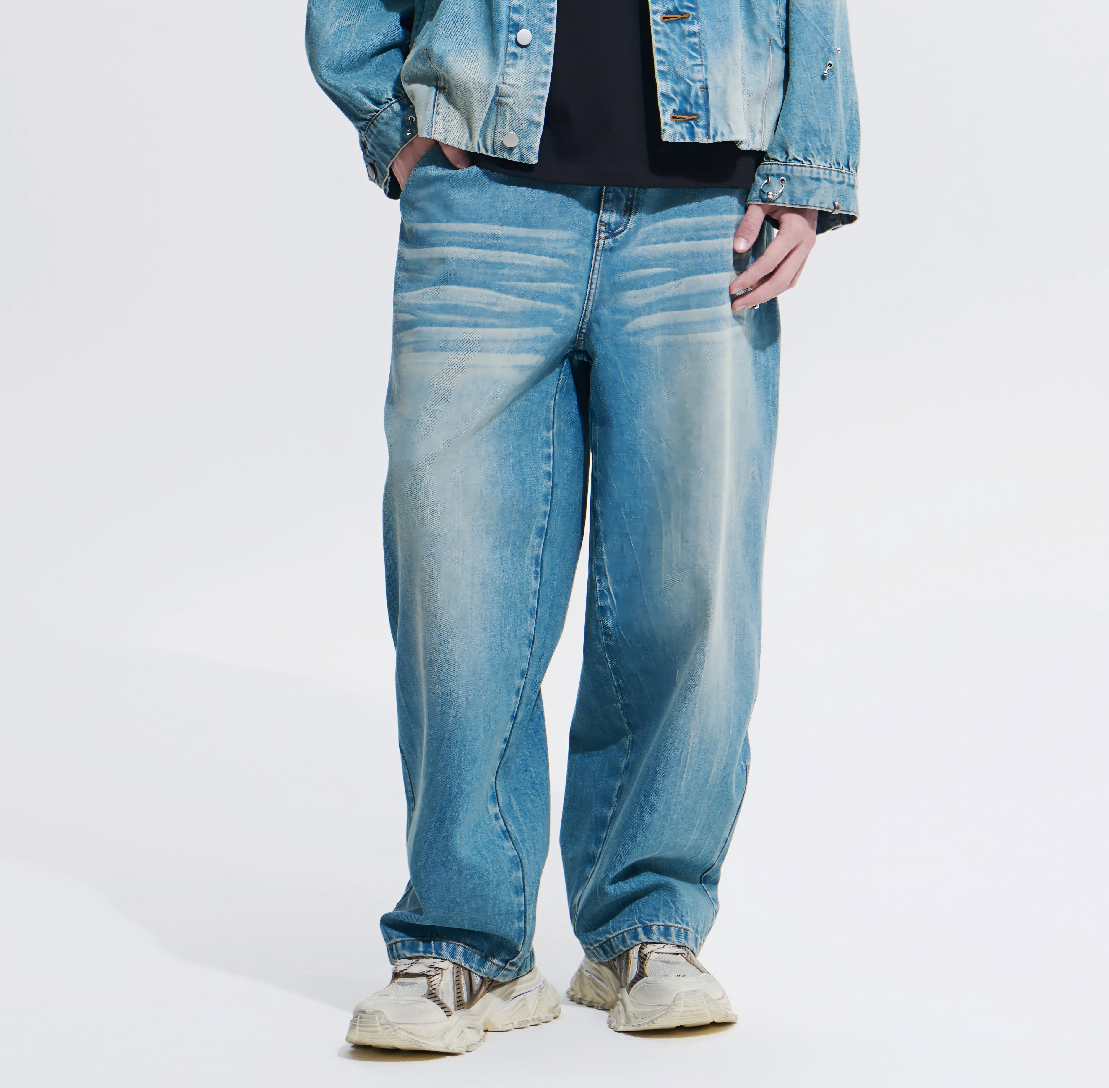 下身搭配的同品牌水洗蓝牛仔裤,以宽松直筒的版型,完美承接了上身的潮流感,并注入一股随性气质。水洗工艺带来的复古色调与轻微做旧感,与早秋的沉稳氛围不谋而合。整体造型松紧有度,既不过分厚重,也不显单薄,恰恰诠释了早秋最令人向往的松弛感。