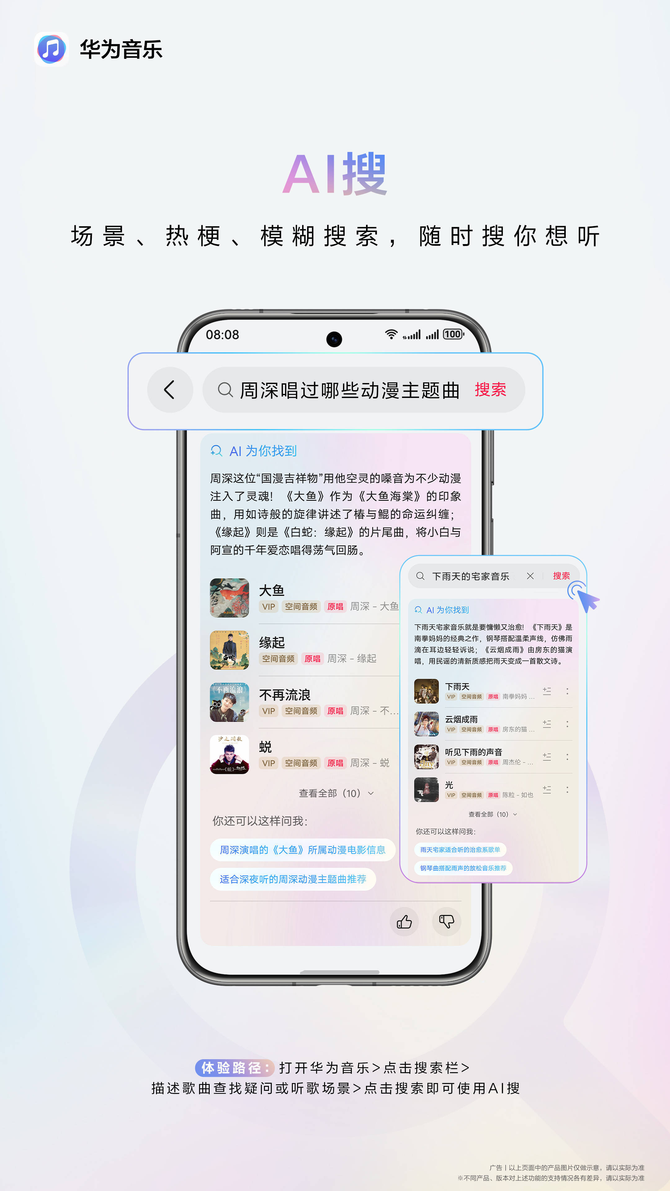 华为音乐此次功能上新,不仅是技术升级,更是对用户体验的深度思考。无论是解决歌荒、探索音乐知识,还是寻找“说不出名字但是想听的歌”,华为音乐都给出了更优解。随着鸿蒙生态的不断完善,华为音乐还将持续带来高品质的内容生态和智能体验。尝鲜全新智慧功能,可留意设备升级报名信息,更新至HarmonyOS 6后前往升级华为音乐,开启属于你的音乐新旅程!