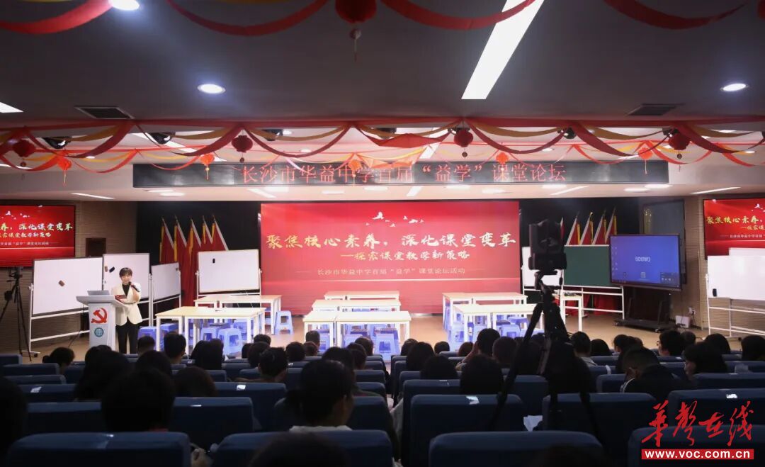 华声在线10月22日讯(通讯员 贺鹏)10月20日—21日,长沙市华益中学首届“益学”课堂论坛举行。论坛以“聚焦核心素养,深化课堂变革——探索课堂教学新策略”为主题,围绕“合作学习”与“逆向教学”展开深度研讨,邀请浙江大学盛群力、杭州师范大学马兰两位教学设计专家现场指导,华益全体教师、华夏学校及弘益高中骨干团队、东北师范大学培训项目学习团共同参与。