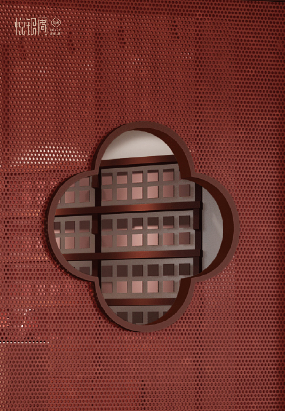 以“阁纳万象,窗映悦心”为空间理念,深度萃取中国传统建筑中“阁”与“窗”的文化意象,将银饰陈列、品牌理念与东方美学融为一体,藉此空间,打造一个可观、可游、可感、可藏的人文场景。