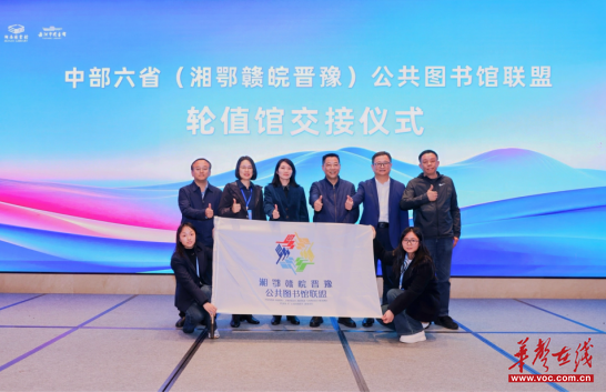 会议还举行了中部六省公共图书馆联盟轮值馆交接仪式。湖南图书馆党委书记、馆长贺美华将轮值旗帜正式移交至江西省图书馆副馆长刘薇薇手中,标志着2026年联盟事业将在江西省图书馆的牵头下开启新篇章。