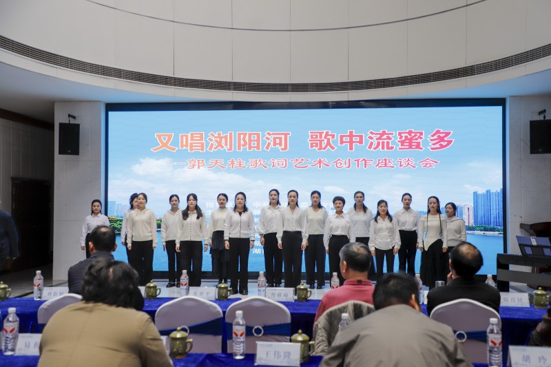 活动现场设置了歌词赏析、创作分享等环节。郭天柱先生结合自身数十年文学创作经历,深情讲述《又唱浏阳河》的灵感溯源——从湖湘山水汲取养分,用“流蜜的歌”“幸福的歌”勾勒地域风物与时代变迁,真挚话语里满是对家乡与时代的热爱,引发全场强烈共鸣。刘新权、王伟隆、陆良民、汪兴旺、杨洪铭等嘉宾则立足各自深耕领域,从诗词韵律的凝练之美、音乐适配的和谐之妙、文化传播的创新之道等维度各抒己见,为经典作品的传承创新与湘阴文艺事业的高质量发展建言献策。