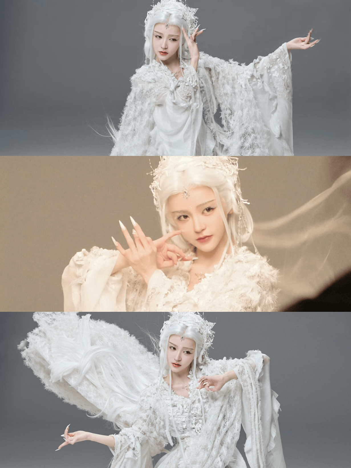 在《天地剑心》中,饶嘉迪饰演的食情雪妖,堪称一次教科书级的 “有效客串” 。她没有冗长的背景铺垫,仅以一头流泻的银发、一身清冷的气质和一张被观众形容为“被上帝精心雕琢过”的精致脸庞,便在短暂的几分钟内,将角色的神秘与凄美刻画得入木三分。戏份虽短,却处处可见其用心——一个眼神交织着不谙世事的天真与看透情爱的沧桑,一袭白衣衬着胜雪肌肤,出场便惊艳了屏幕前的所有观众。弹幕中“雪妖太美了”、“这个客串是来洗眼睛的吧”等热议不绝,足以证明她已成功用最短的时长,在观众心中烙下了最深的印象。